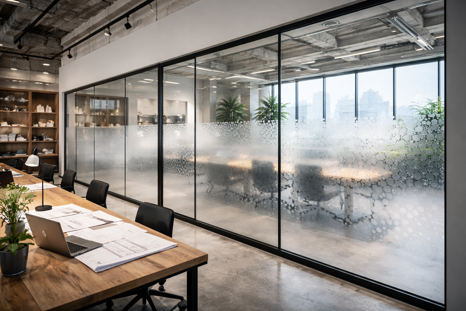Enhance your workspace with professional window films that balance privacy and natural light. Our premium frosted finishes create a sophisticated barrier for glass partitions, eliminating distractions for a focused environment. Durable and cost-effective, they offer a modern, adaptable alternative to etched glass.