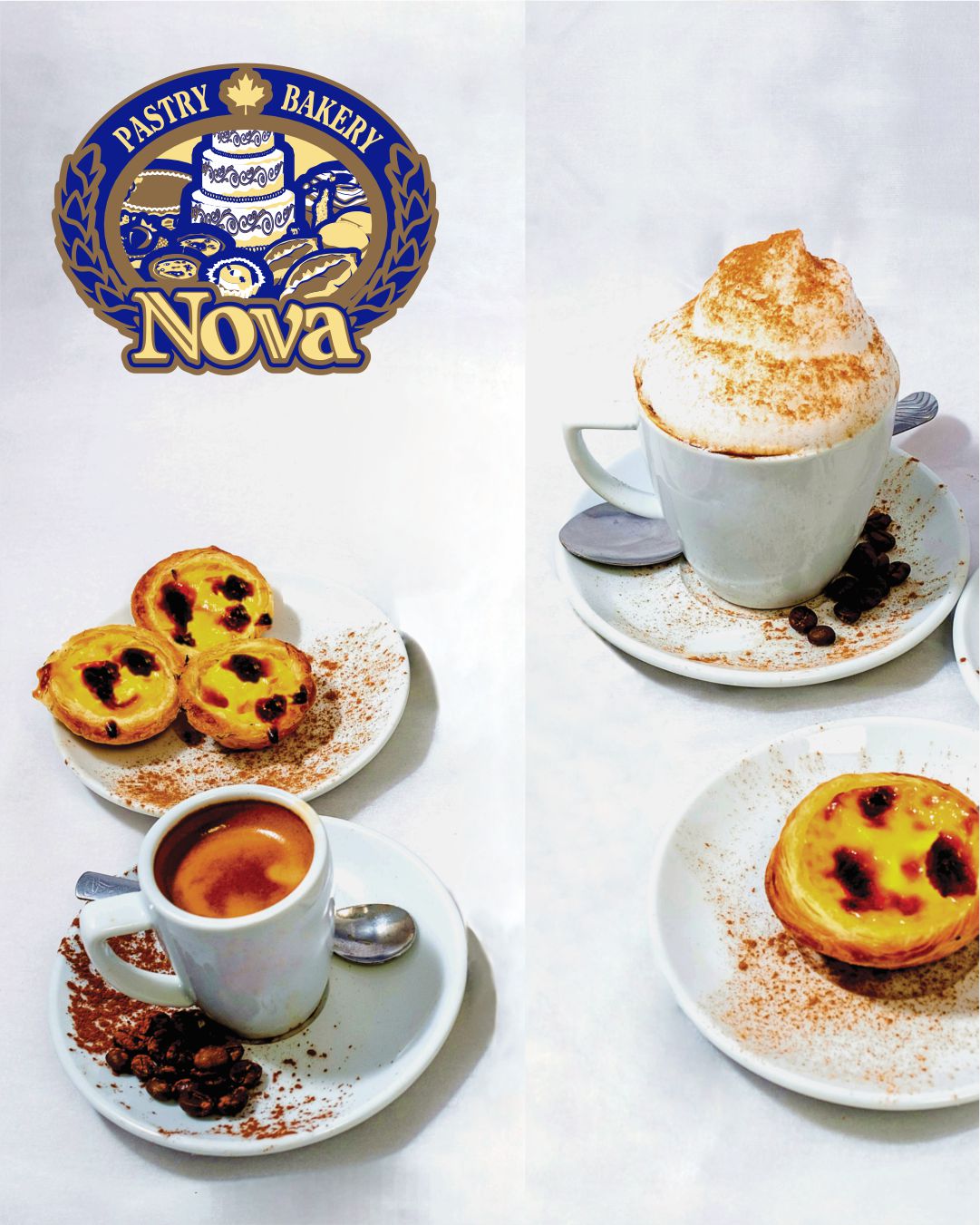 Nova Bakery sought a complete visual transformation to match the artisanal quality of their traditional Portuguese pastries and cafe offerings. The goal was to move beyond standard signage and create a “brand immersion” experience for every customer who walks through the door. Concept Graphics provided a top-to-bottom branding solution, covering both the high-traffic exterior storefront and the interior dining environment.